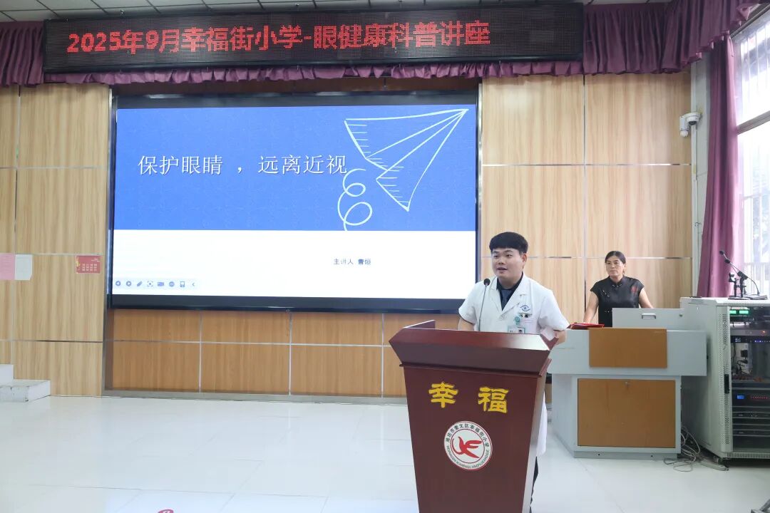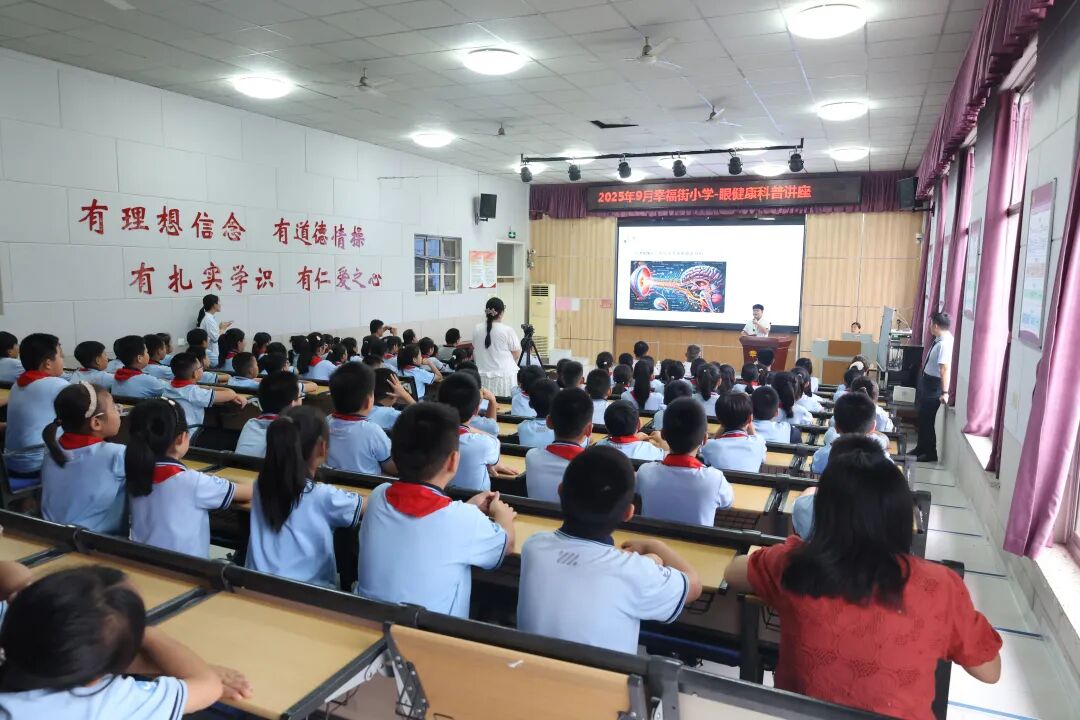 在第19个全国科普月火热开展之际,为落实《“十四五”全国眼健康规划》,提升儿童青少年科学用眼素养,9月16日下午,由奎文区科协、奎文区教体局、潍州路街道办事处联合指导,奎文区幸福街小学与潍坊眼科医院眼健康科普工作室共同主办的“眼健康科普讲座”在幸福街小学报告厅举行,为100余名师生送上了一堂别开生面的“开学护眼第一课”。